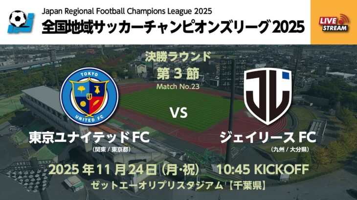 全国地域サッカーチャンピオンズリーグ2025 決勝ラウンド 第3節 Match No.23【ライブ配信】 東京ユナイテッ […]