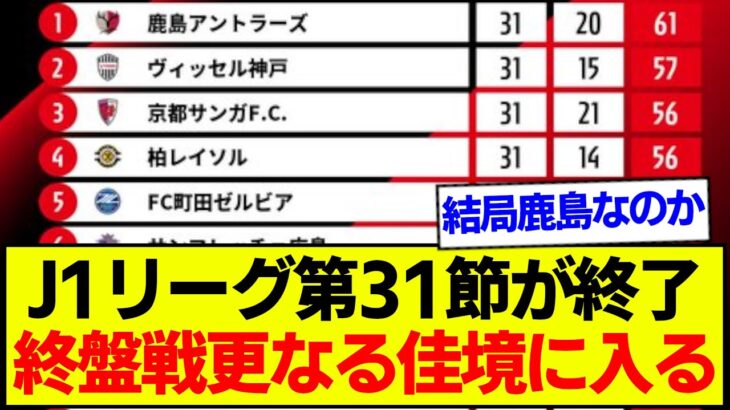 【速報】J1リーグ第32節が終了、最新の順位表がコチラです