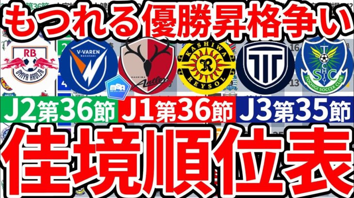 【シーズン佳境順位表│J1第36節/J2第36節/J3第35節】J1鹿島vs柏の最終決戦/J2次節水戸vs長崎&千葉大宮の狙い/J3次節昇格決まるか&大混戦6位争いなど!