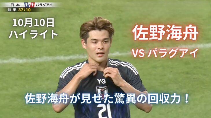 10月10日 キリンチャレンジカップ 日本 2-2 パラグアイ 佐野海舟 後半44分途中交代 #佐野海舟 #日本代表